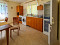 - Kitchen with living room and fireplace.