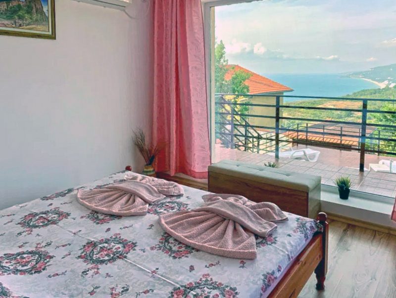French windows reveal an incredible sea view - the beaches of Albena, Kranevo and Golden Sands. On the first floor there is a bedroom, bathroom, utility room and a spacious living room - combining a fully equipped kitchen, dining area and a comfortable sofa bed. At your disposal are a refrigerator / freezer, microwave and stove, coffee machine, toaster, food processor, washing machine, air conditioning, TV, Bulsatcom, parking space.