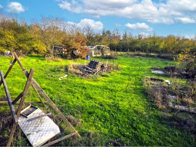1572 sqm building plot with a small building, water and electricity, popular village, 25 km to sea