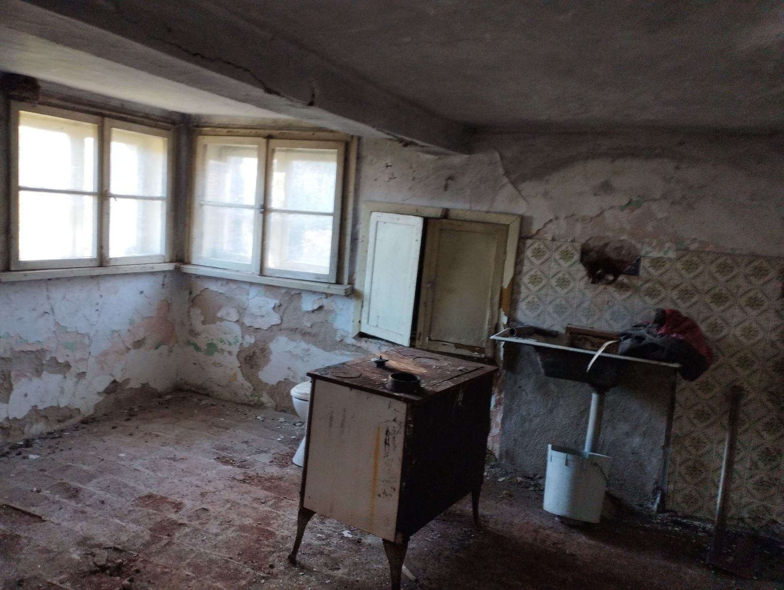 First floor (accessed via external staircase): Three rooms and a corridor