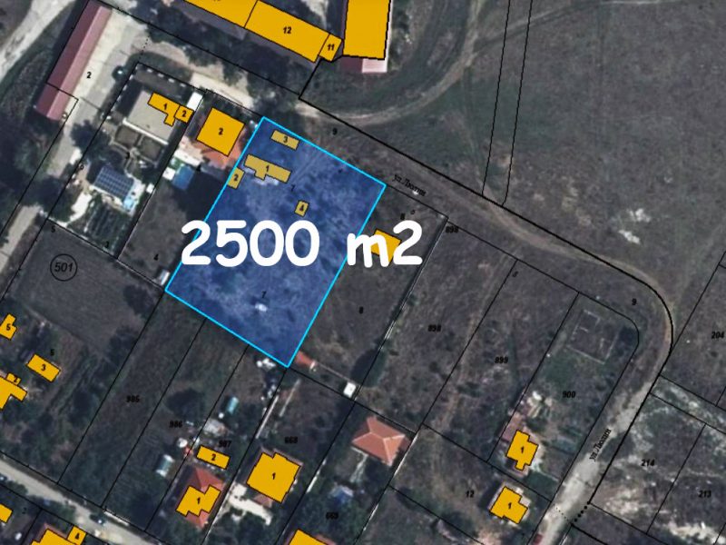 2500 sqm building plot, water and electricity connection, sought-after village, 7 km to sea