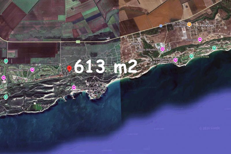 For sale is a 613 sqm building plot, located in the village of Topola, Kavarna municipality, just 250 meters from the entrance to the BlackSeaRama Golf & Villas golf complex, 2 km from the sea.