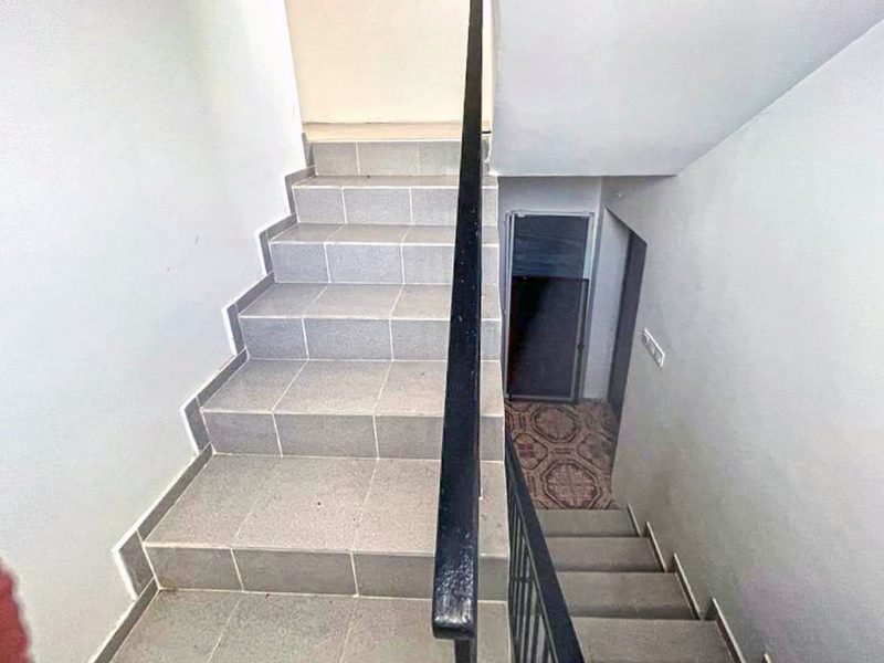 The first floor has a large living room with access to the backyard, separate kitchen, two bedrooms, bathroom + WC, hallway, one terrace, stairs to the second floor.