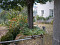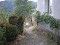 The garden is planted with fruit trees, trellis vines and flowers.