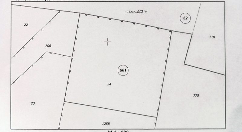 1396 sqm building plot, water and electricity at the border, sought-after village, 1 km to sea